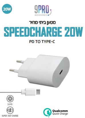 / מטען ביתי SpeedCharge 9PRO 20W PD עם כבל Type C